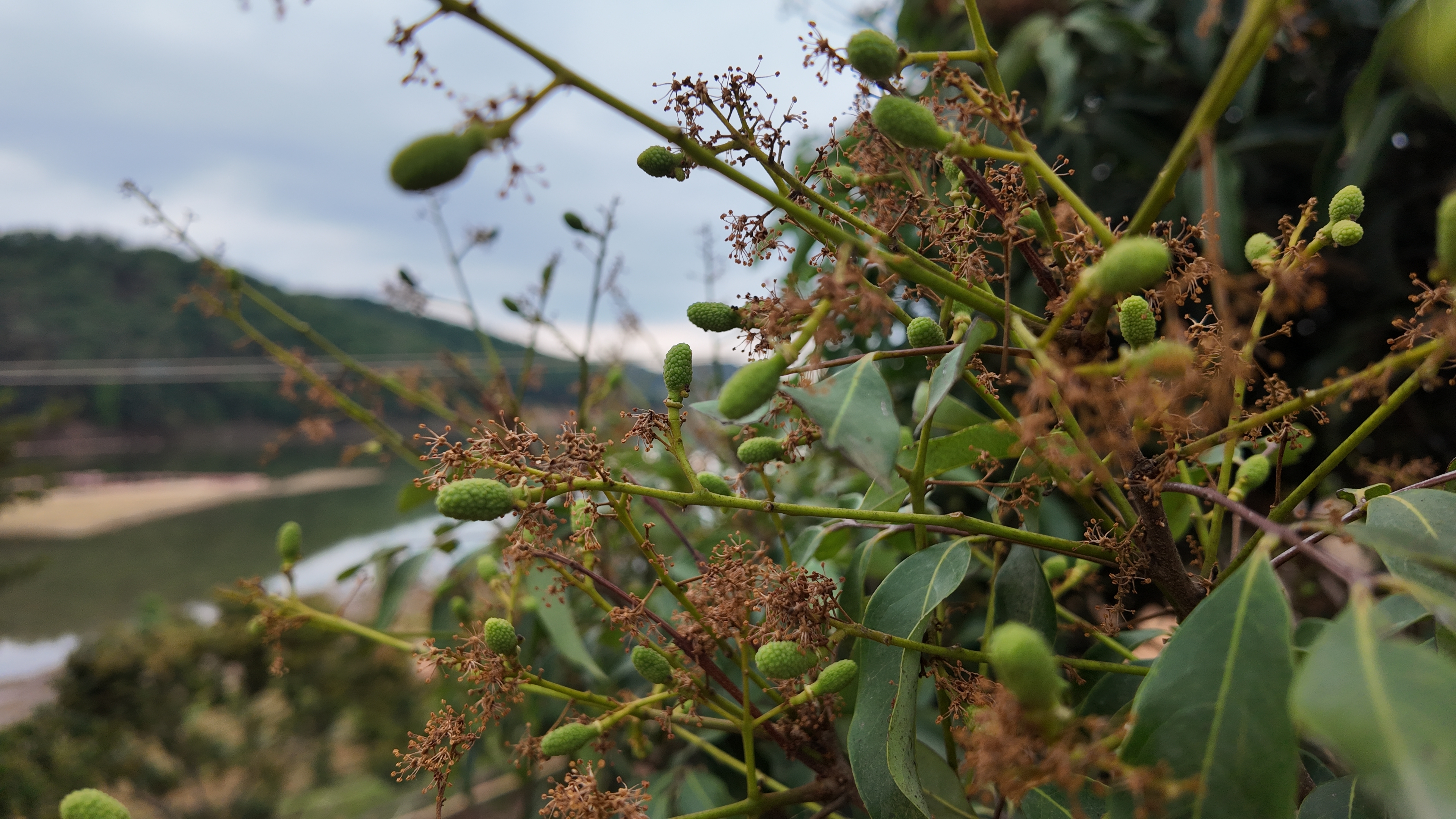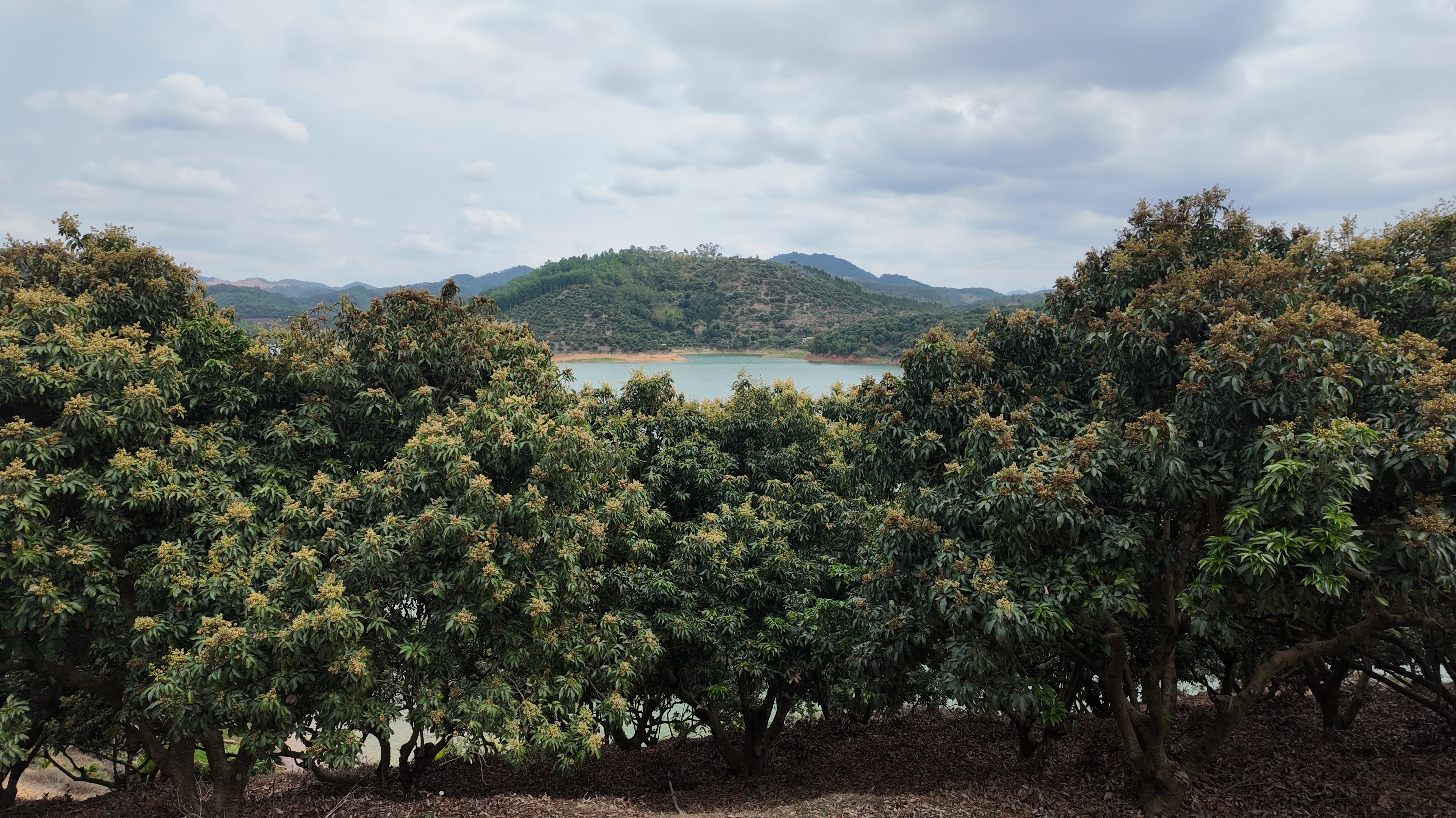 高州市华峰果业发展有限公司位于东岸镇高州水库旁的,随着越来越多的荔枝花谢落、荔枝果长出,原先淡黄色的荔枝花海颜色不断变深。