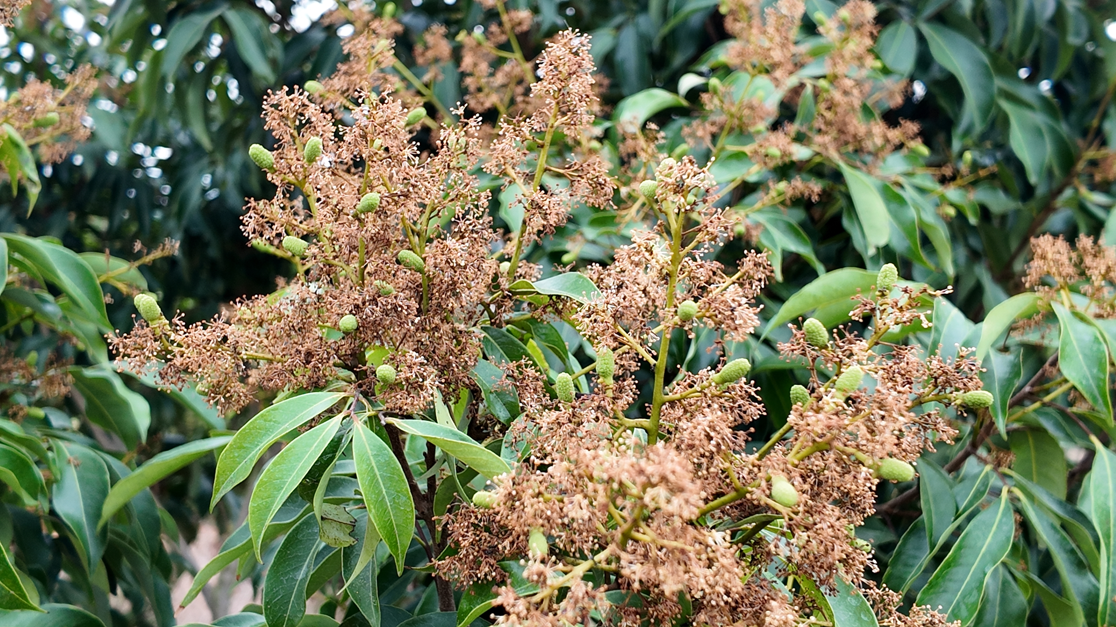 今年,各个荔枝产区的来花情况都远不及去年,不少桂味、糯米糍等晚熟荔枝果树出现只长红叶、未出荔花的情况。